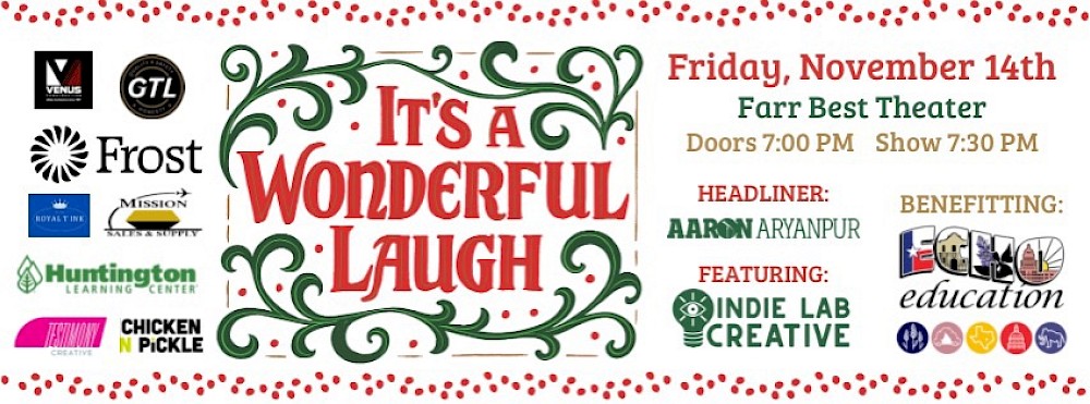 It's a Wonderful Laugh is a two-act comedy show! Portion of show tickets benefits Echo Education Services, a local nonprofit that hosts educational excursions for students, educators, and parents across the DFW-area. Help us extend the reach and impact of our programs by giving a laugh!