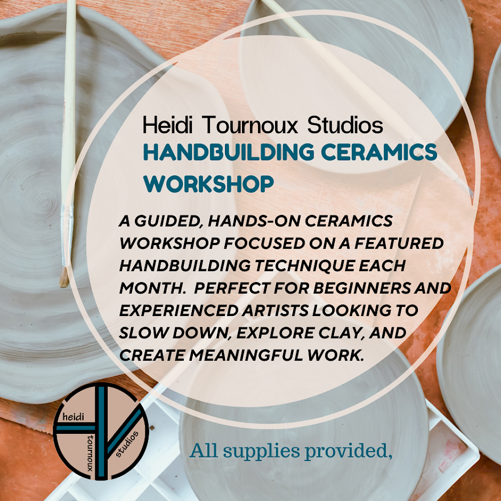 All clay, tools, and materials are provided. Finished pieces will be fired by Heidi Tournoux Studios and available for pickup at one of our future Glaze Workshop Dates.