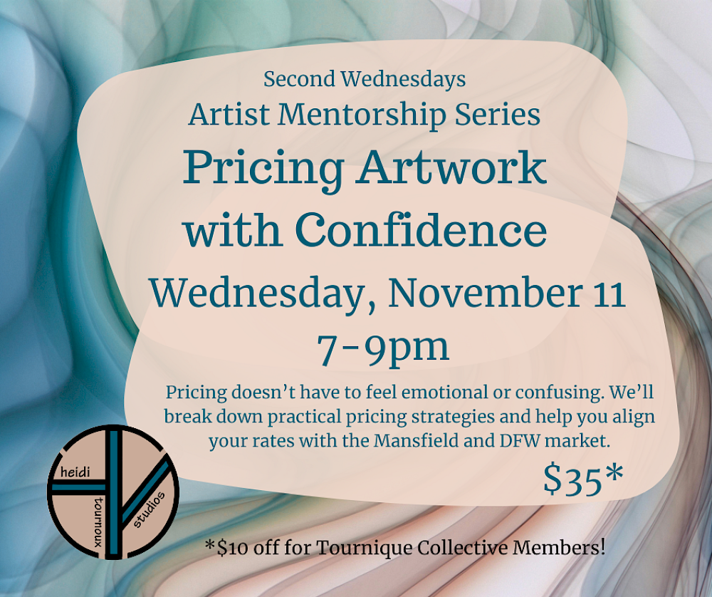 The Artist Mentorship Series is a monthly workshop designed for emerging and mid-career artists in Mansfield and the greater DFW area who want to move from “making art” to “building a sustainable art practice.”